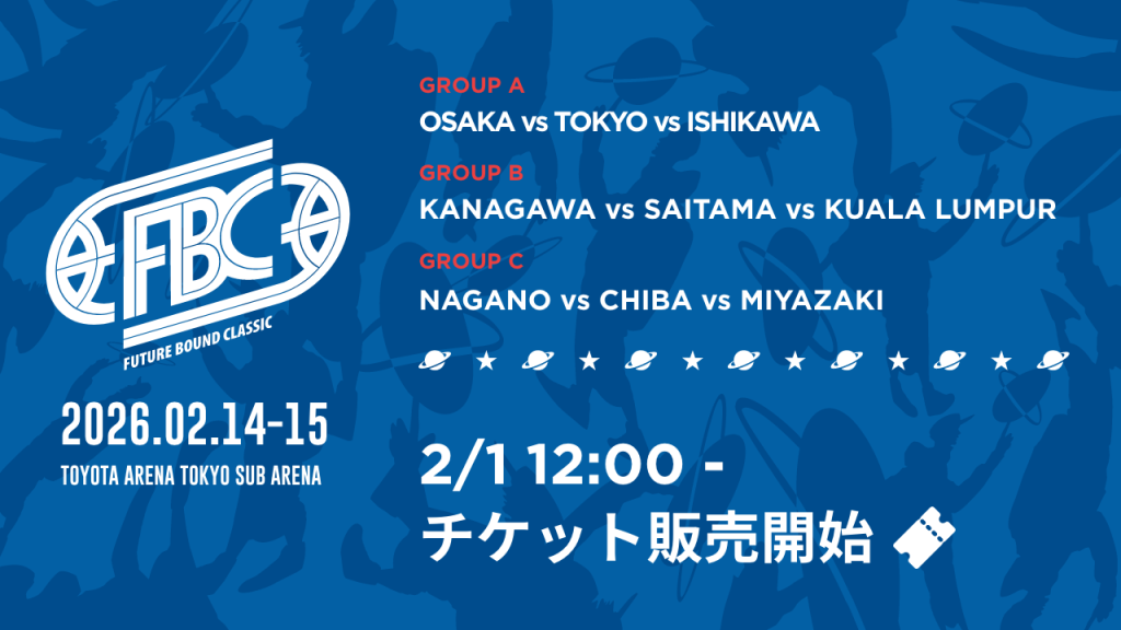 2026年2月14日(土)・15日(日)にトヨタアリーナ(サブアリーナ)で開催される「Future Bound Classic 2026 (FBC2026)」の全出場チームおよび、観戦チケットの販売詳細をお知らせいたします。